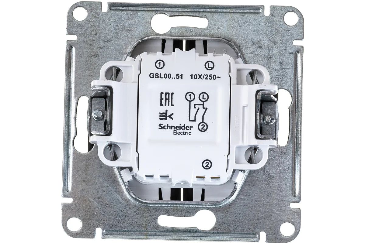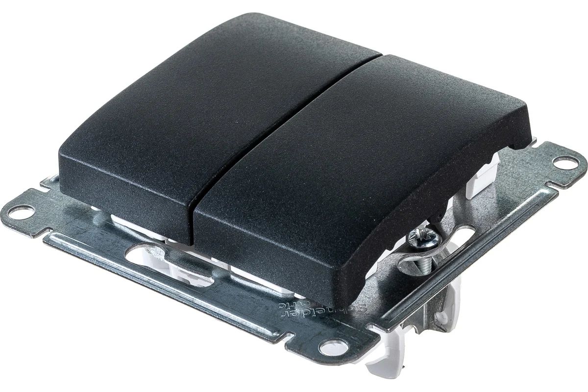 Механизм Schneider Electric Glossa (цвет антрацит) выключателя 2-клавишного подходит для сетей 250 В, на ток 10 А. - Двухклавишный выключатель позволяет управлять двумя источниками света с одной точки. - Выполнен из материала PС+ASA, стойкого к УФ-излучению и появлению царапин. - Эргономичные клеммы расположены в два ряда: сверху и снизу.