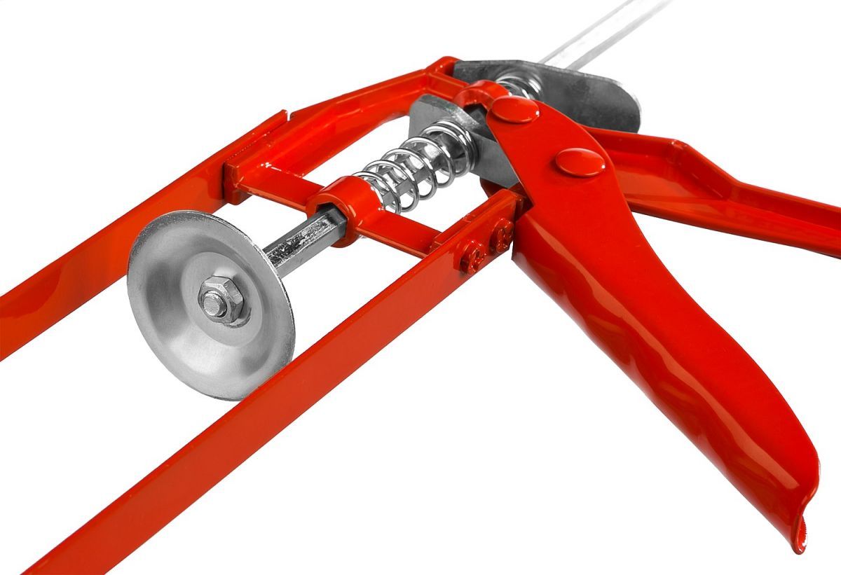 Пистолет для герметиков подходит для работы с картриджами объемом 310 мл, имеет скелетную конструкцию из стали, ручку из алюминиевого сплава, которые способствуют равномерной подачи клея либо герметика.