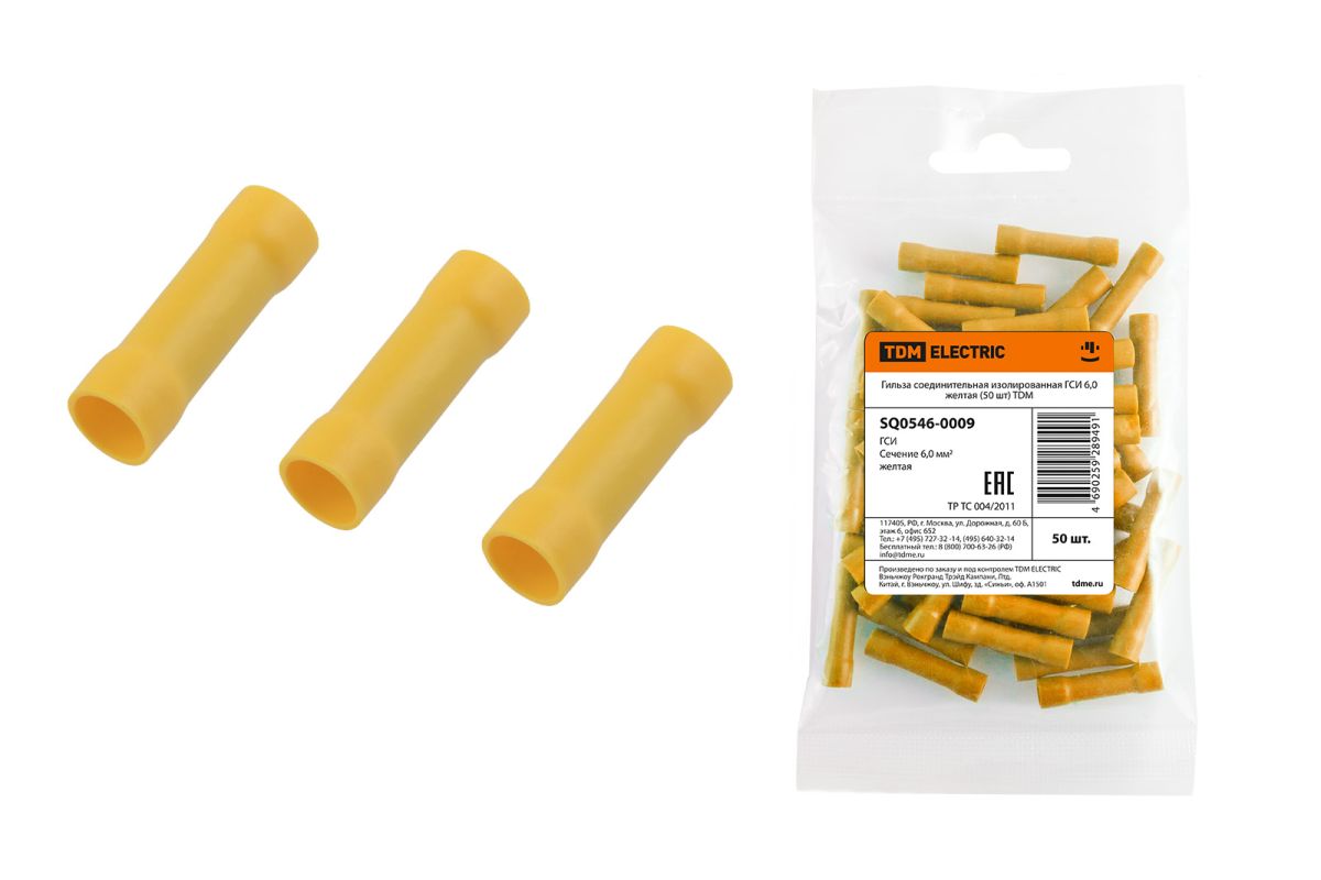 Гильза соединительная изолированная ГСИ 6,0 желтая (50 шт) TDM