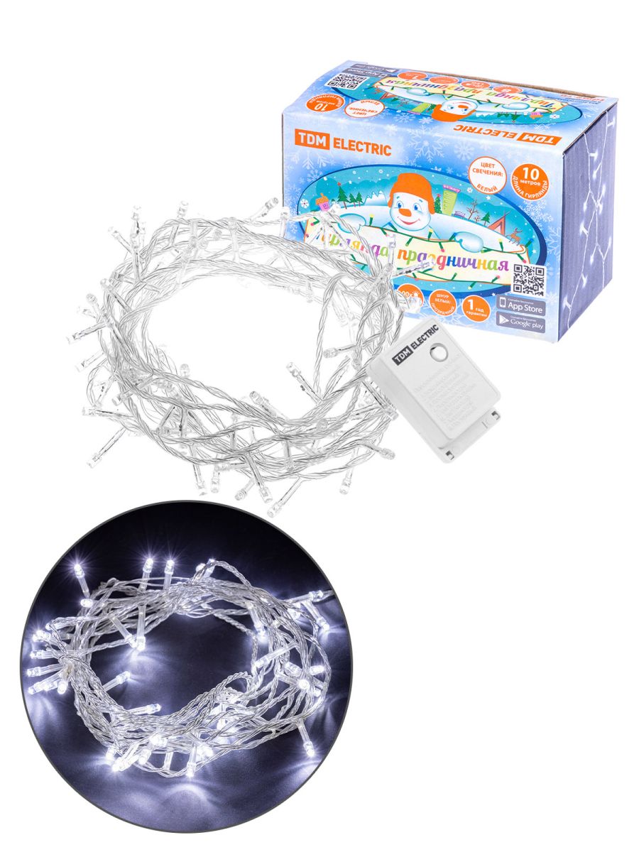 Гирлянда светодиодная СГ100Б10, белая, 10м, 8 режимов, 250 В, TDM