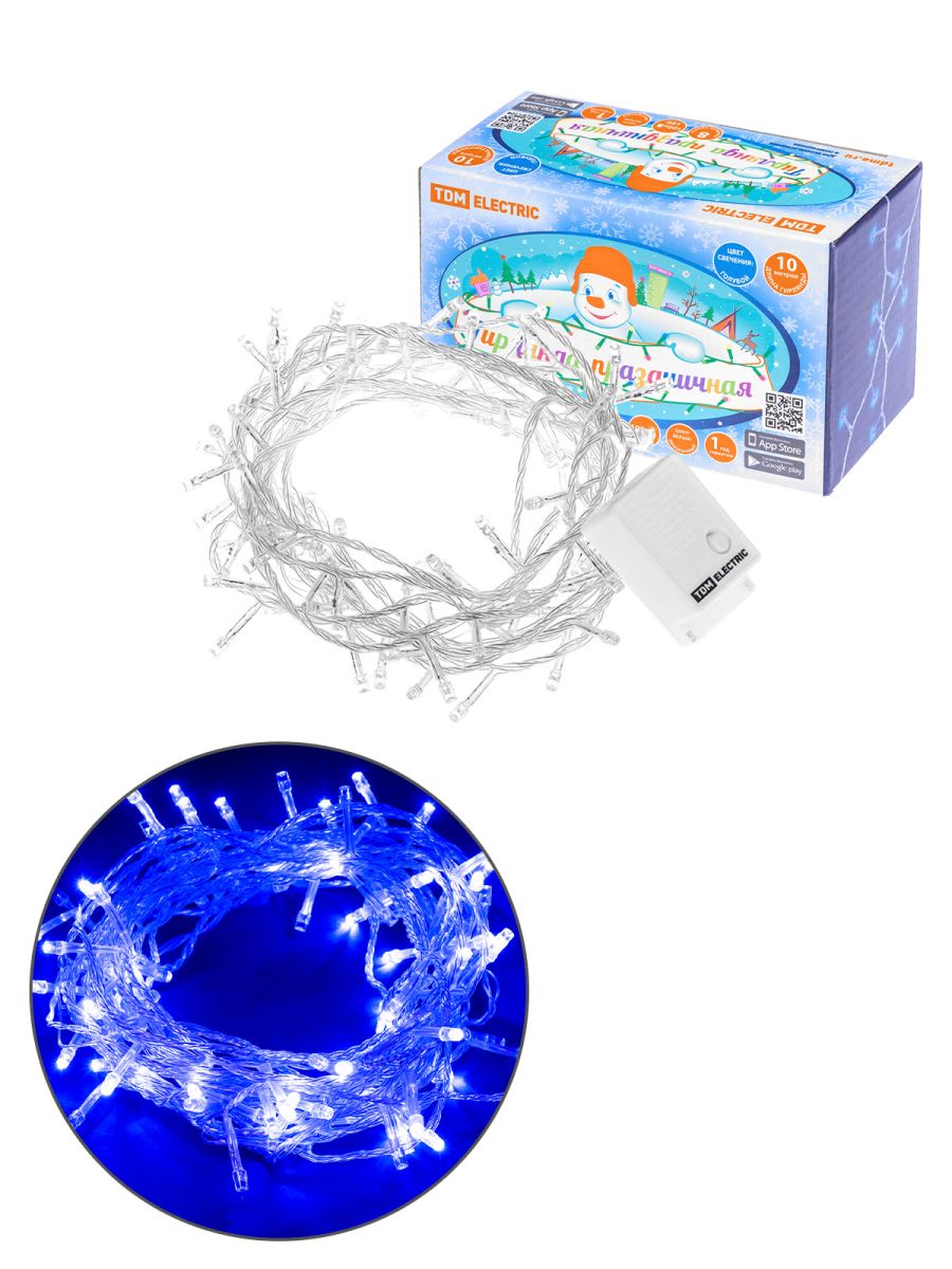 Гирлянда светодиодная СГ100Г10, голубая, 10м, 8 режимов, 250 В, TDM