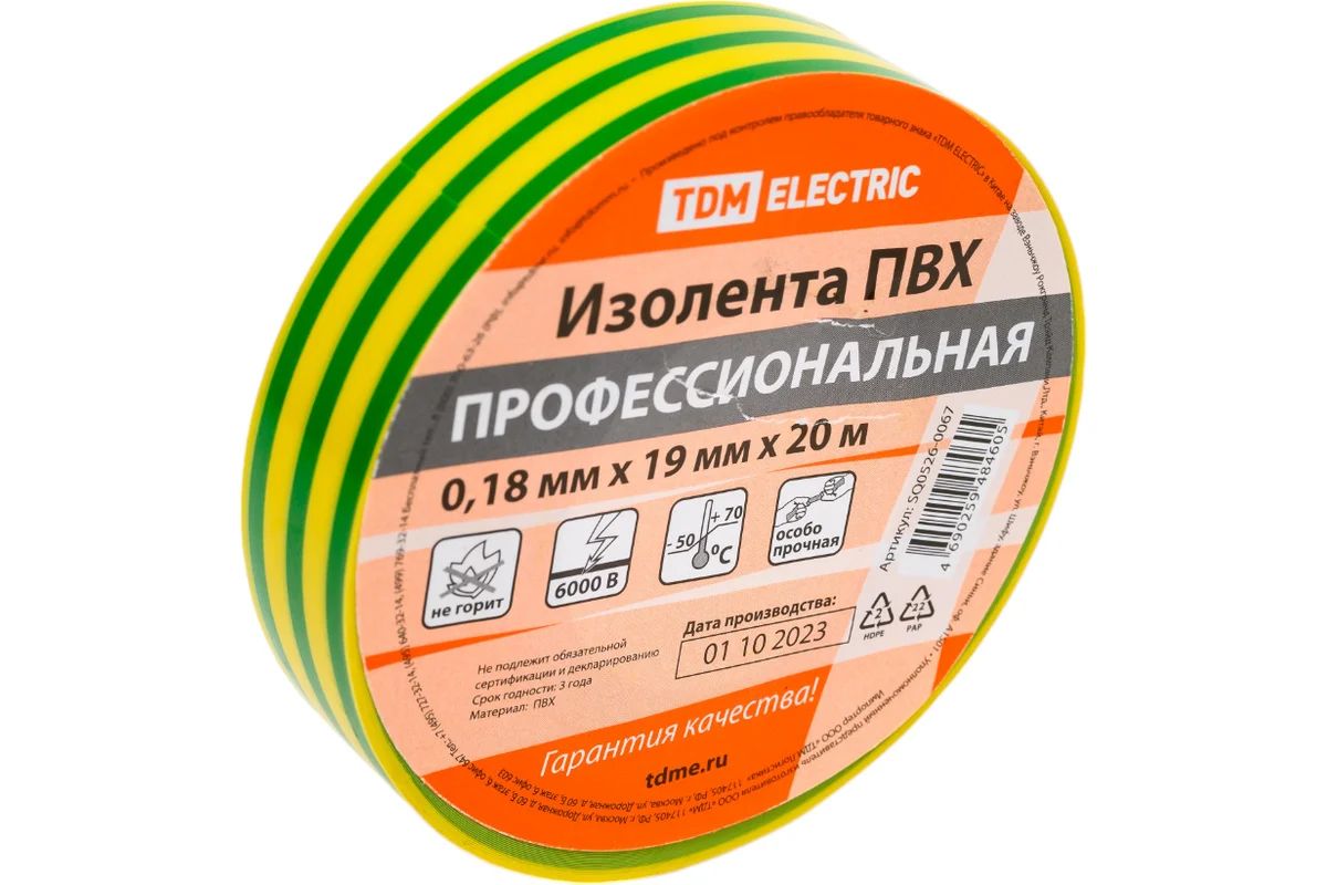 Изолента ПВХ профессиональная 0,18х19мм Желто-зеленая 20м TDM