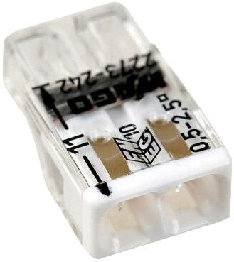 Соединительная клемма для быстрого монтажа WAGO 2273-242 2-х проводная, 0,5-2,5 кв.мм, 450В, 24А, с пастой, 20шт 2540 предназначена для соединения медных или алюминиевых одножильных проводников.