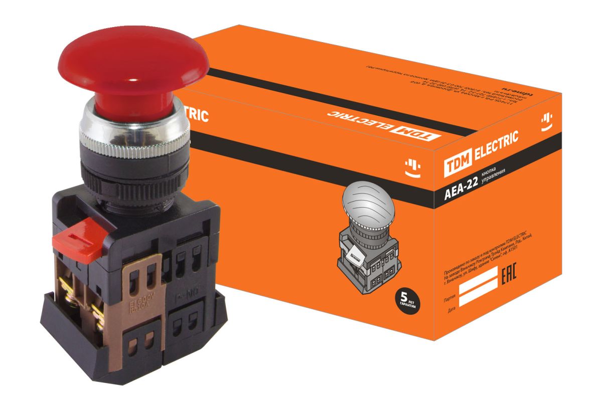 Кнопка AEА-22 «Грибок» красный d22мм 1з+1р TDM