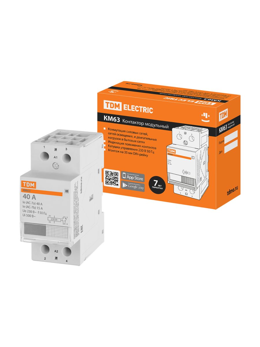 Модульный контактор TDM КМ63/2-40 SQ0213-0009 служит для автоматизации инженерного оборудования, а также для управления различными технологическими процессами. Устанавливается в стандартный щиток и крепится на DIN-рейку специальной защелкой. Основными достоинствами данного устройства являются высокая электрическая износостойкость (около 30000 циклов В-О) и более долгий срок службы контактов за счет серебросодержащего материала. Исполнение - двухполюсное.