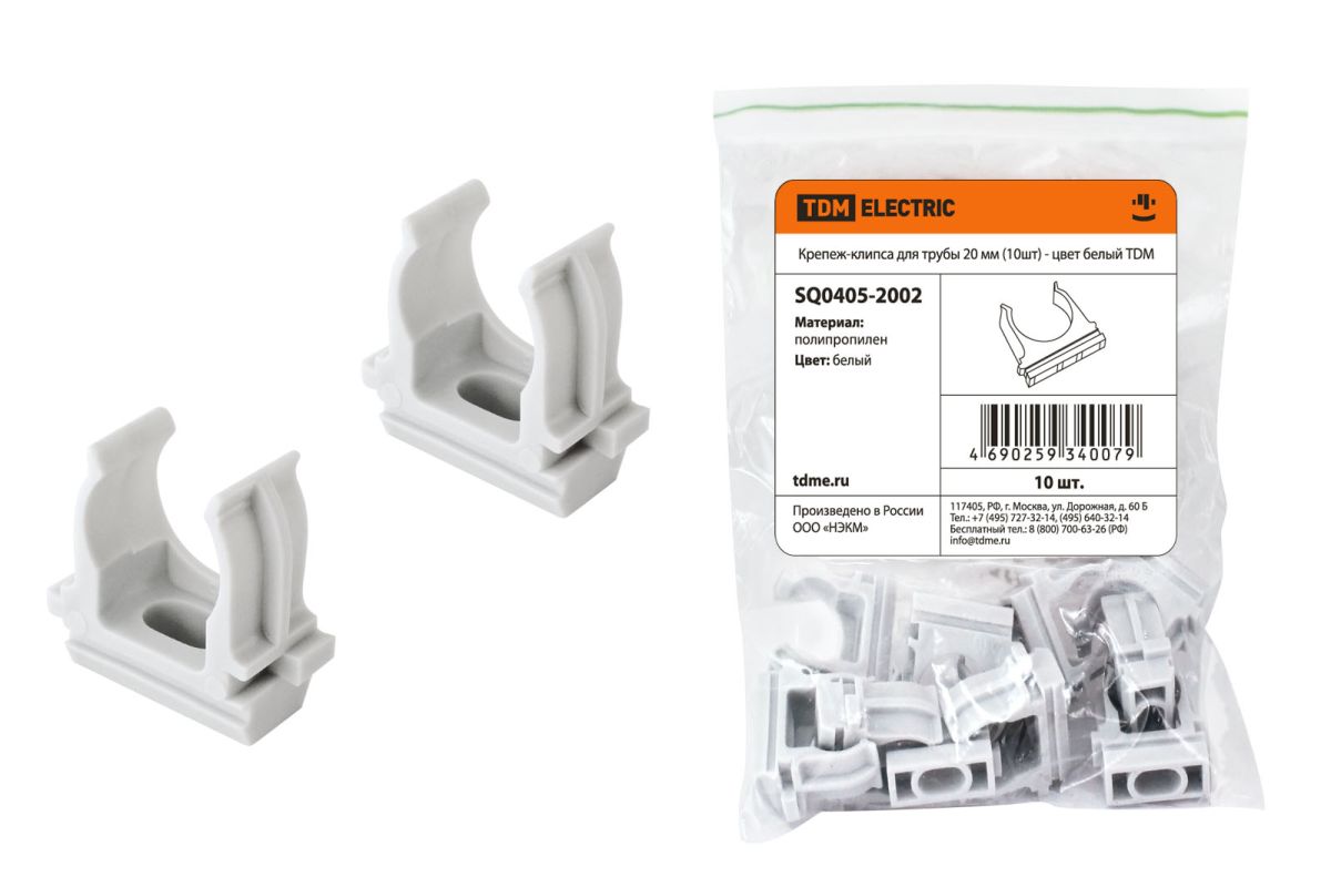 Крепеж-клипса для трубы 20 мм (10шт) - цвет белый TDM