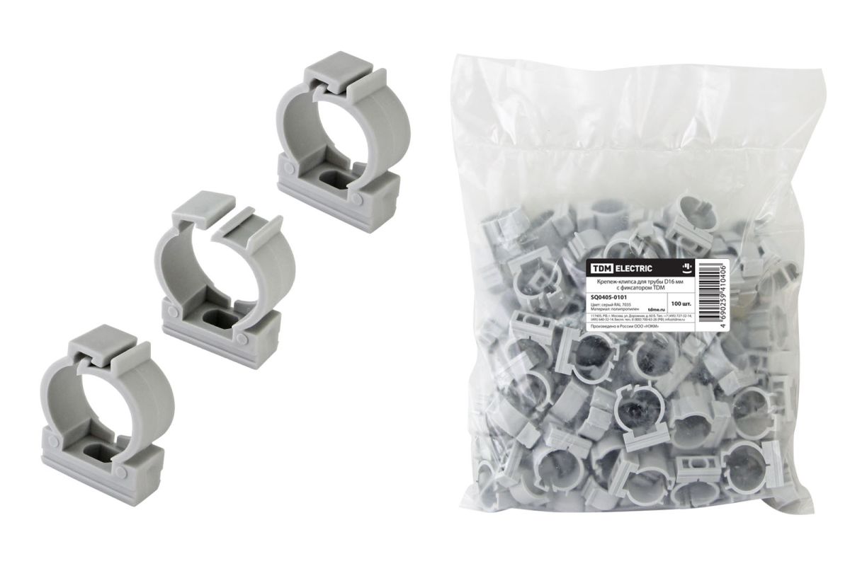 Крепеж-клипса для трубы D16 мм с фиксатором TDM
