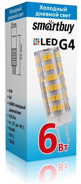 Лампа светодиод. 220V G4 6W/6400 Smartbuy