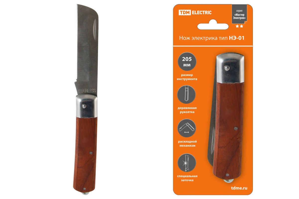 Нож электрика НЭ-01, 205 мм, деревянная рукоятка «МастерЭлектрик» TDM