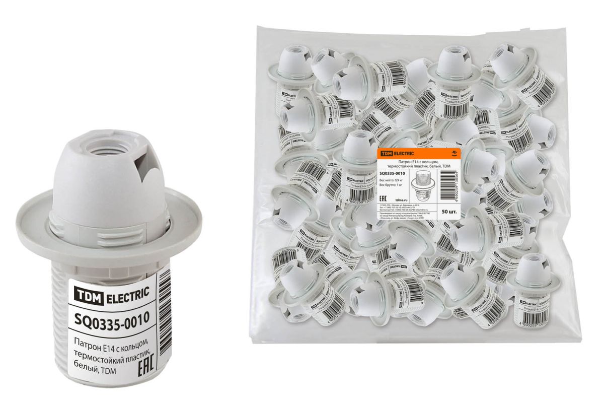 Патрон Е14 с кольцом, термостойкий пластик, белый, TDM SQ0335-0010