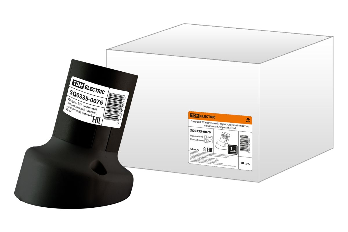 Патрон Е27 настенный, термостойкий пластик, наклонный, черный, TDM SQ0335-0076