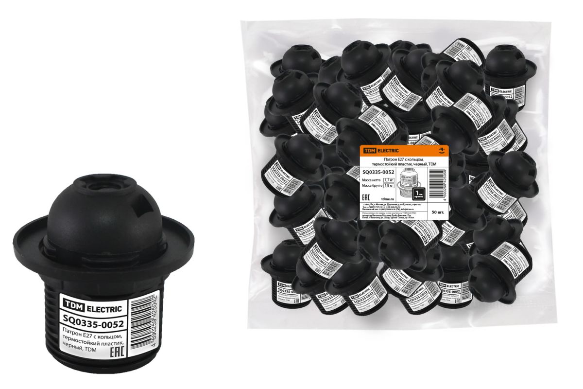 Патрон Е27 с кольцом, термостойкий пластик, черный, TDM SQ0335-0052