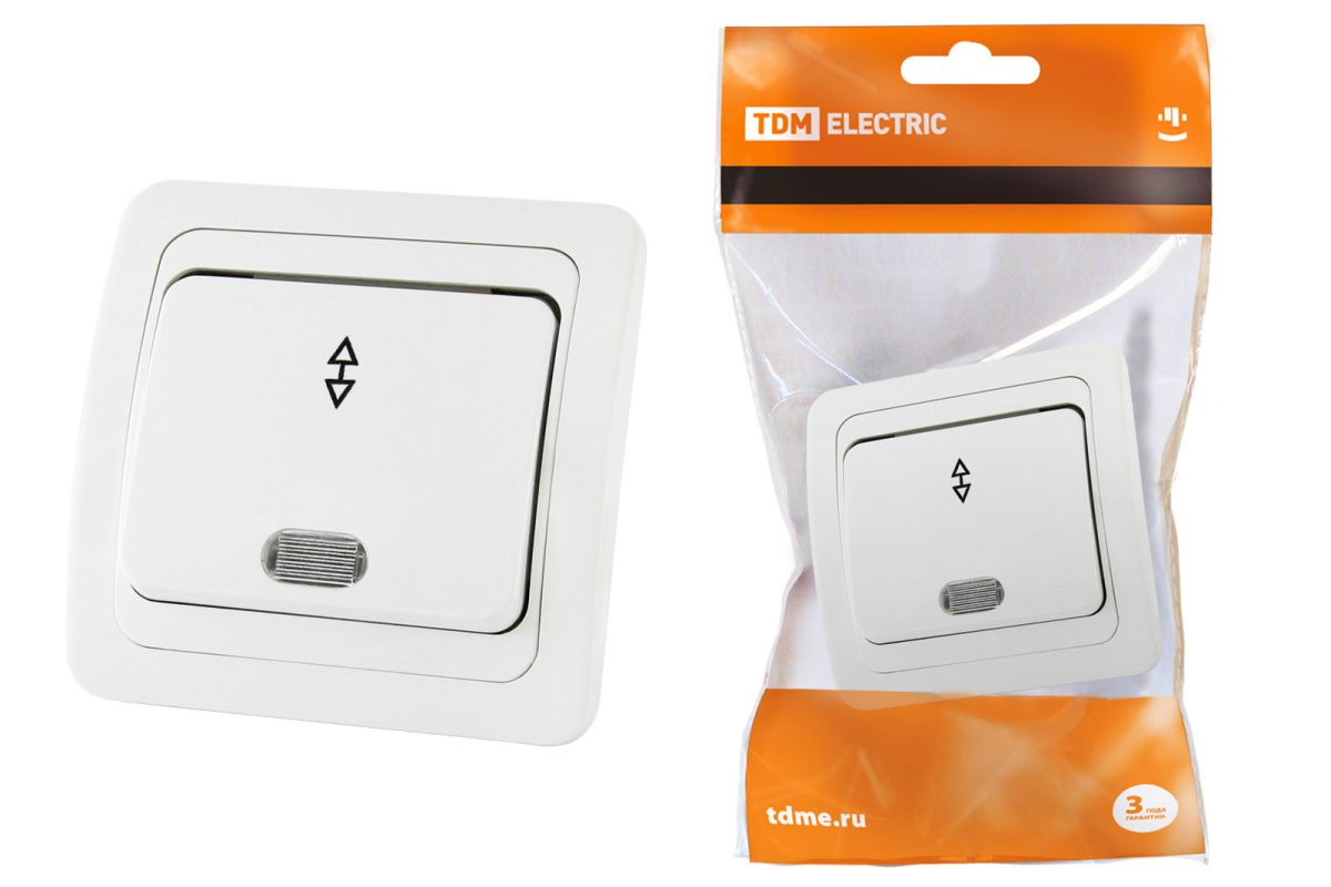 Переключатель на 2 направления с подсветкой 10А белый «Валдай» TDM