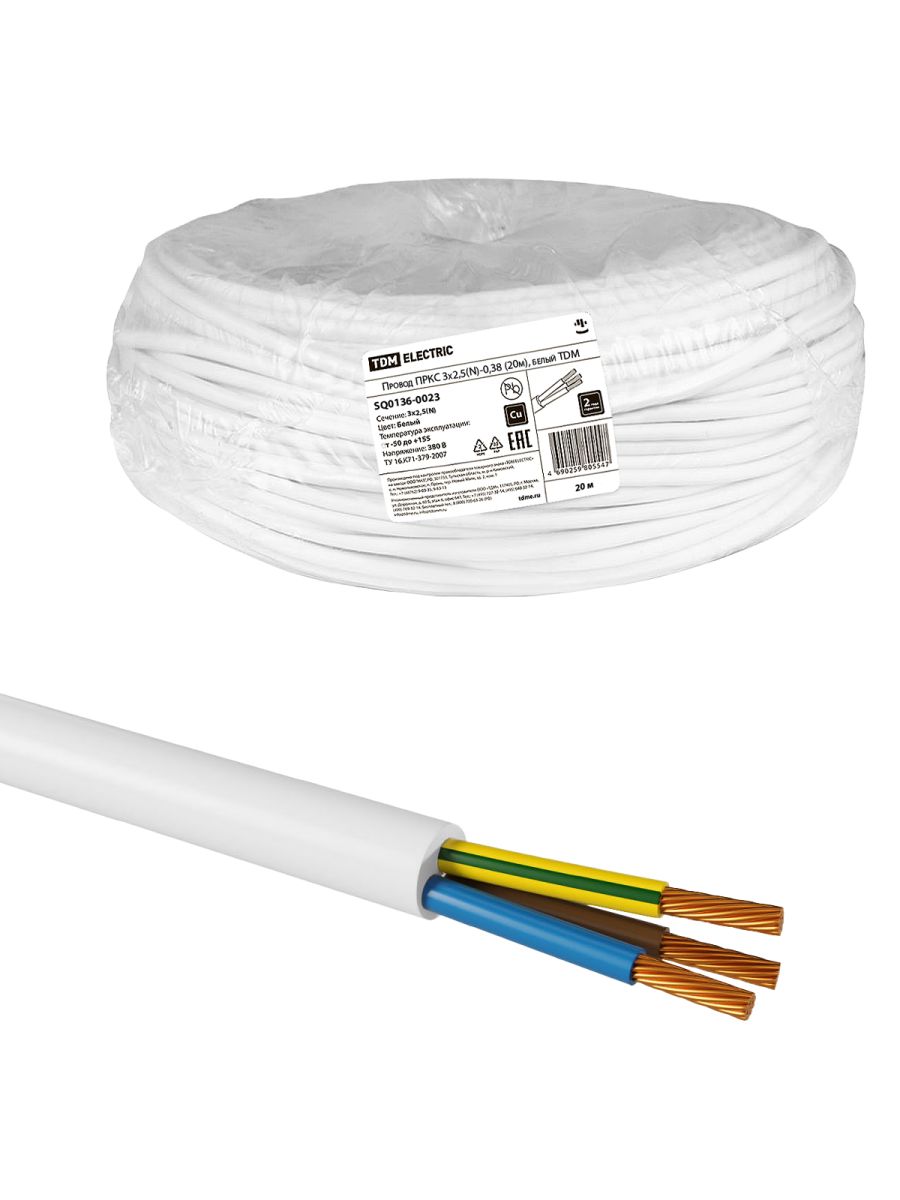 Провод ПРКС 3х2,5(N)-0,38 (20м), белый TDM