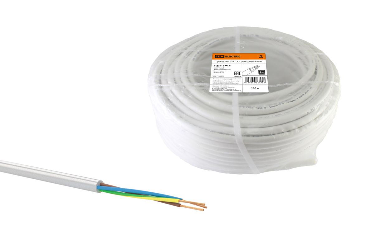 Провод ПВС 3х4 ГОСТ (100м), белый TDM