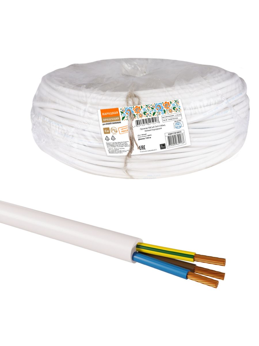 Провод ПВСмб 3х4 (100м), белый Народный
