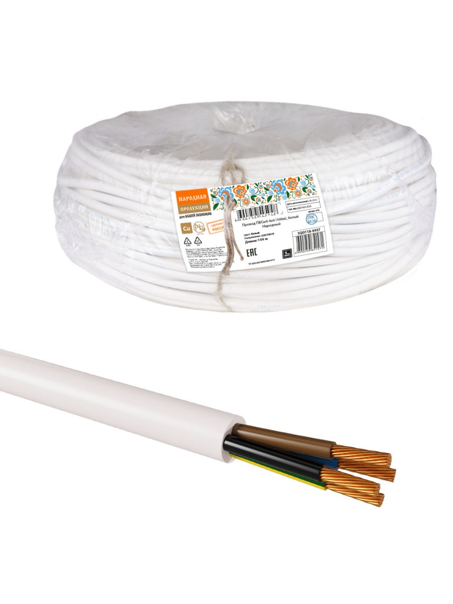Провод ПВСмб 4х4 (100м), белый Народный