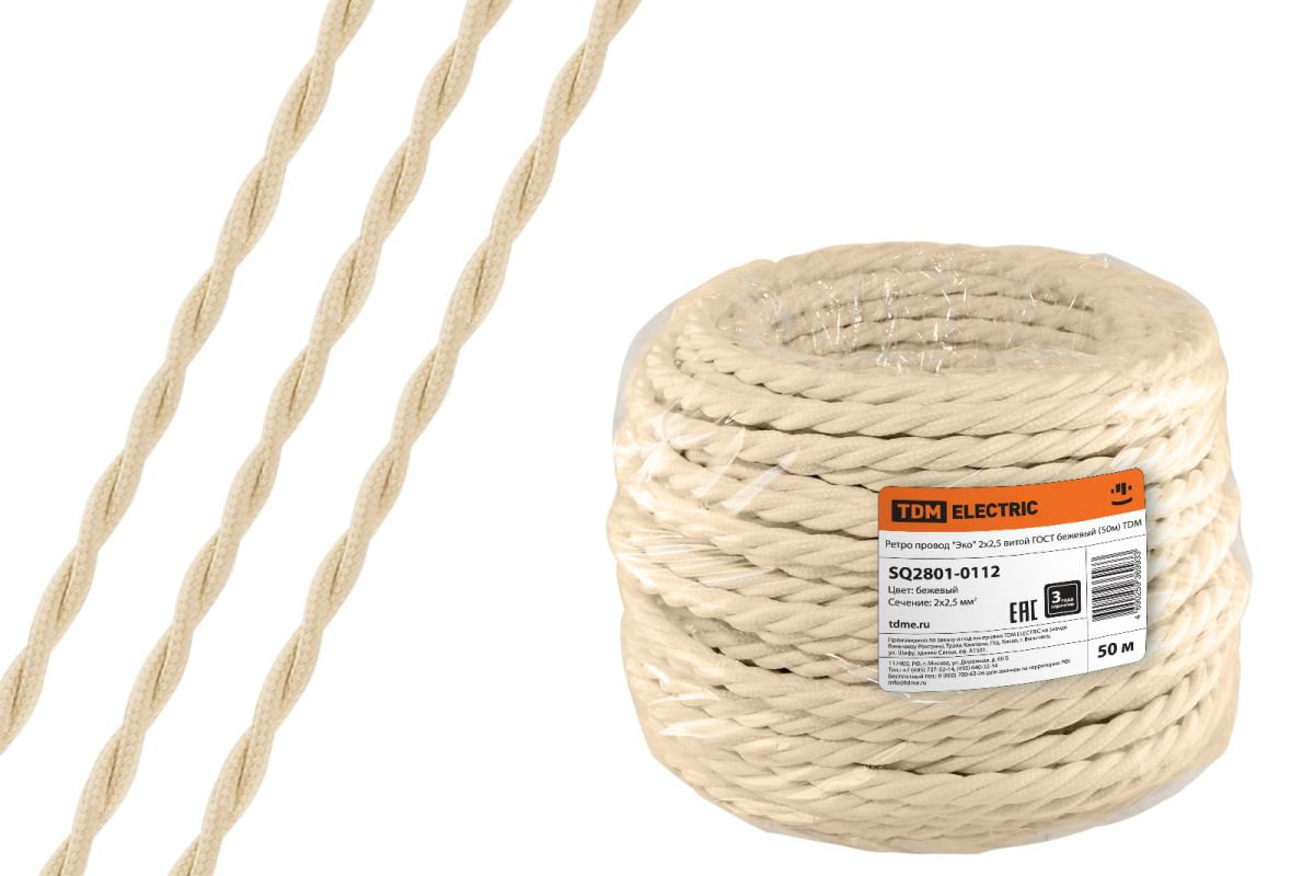 Ретро провод «Эко» 2х2,5 витой ГОСТ бежевый (50м) TDM