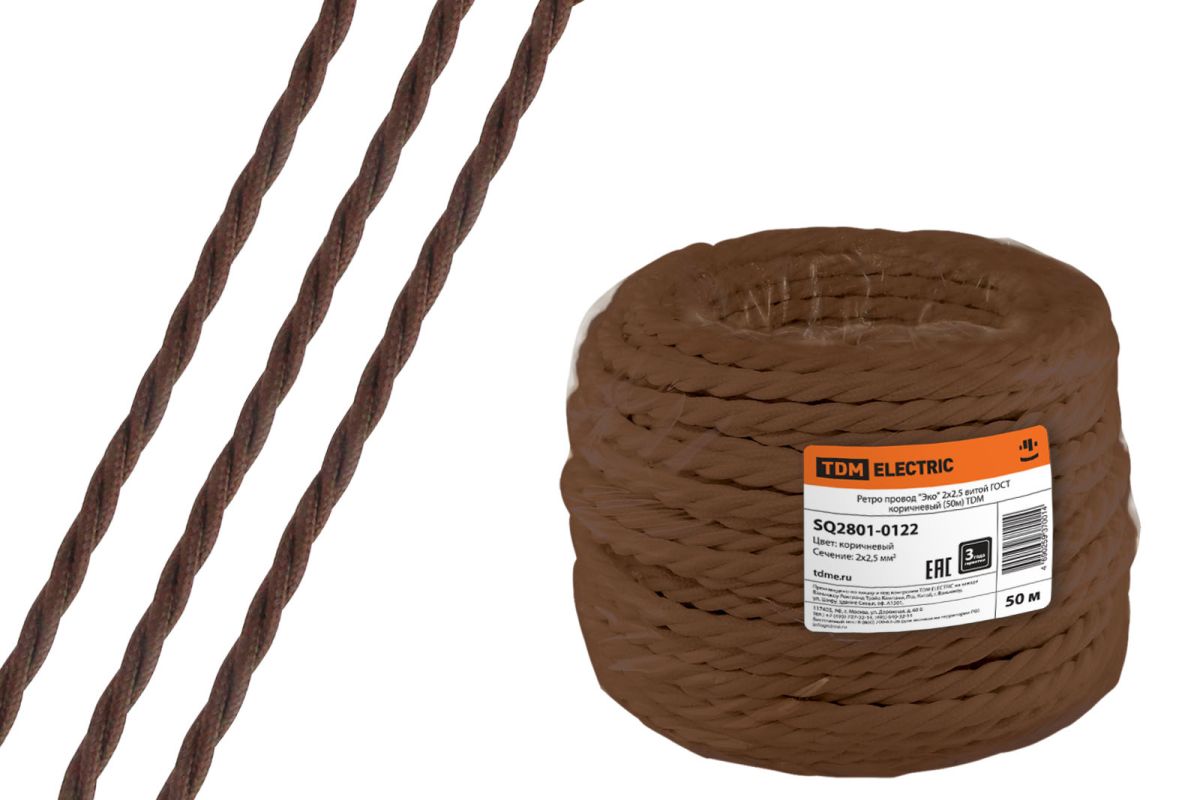 Ретро провод «Эко» 2х2,5 витой ГОСТ коричневый (50м) TDM