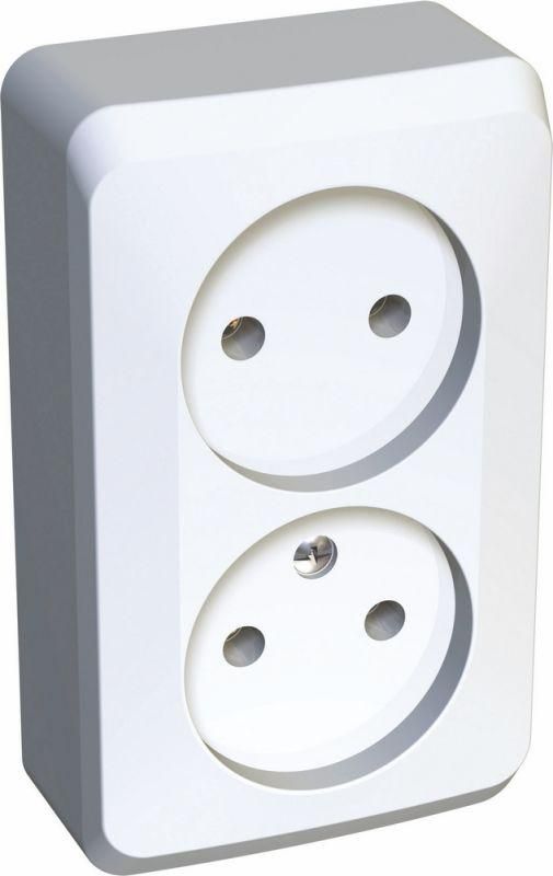 Розетка Schneider Electric ЭТЮД (белый, открытой установки) двухместная, без шторок и заземления предназначена для применения в сетях до 250В, на ток до 16А. Двухместная розетка позволяет подключить два устройства в одном месте. Она проста в установке и удобна в применении. Сделано в России.