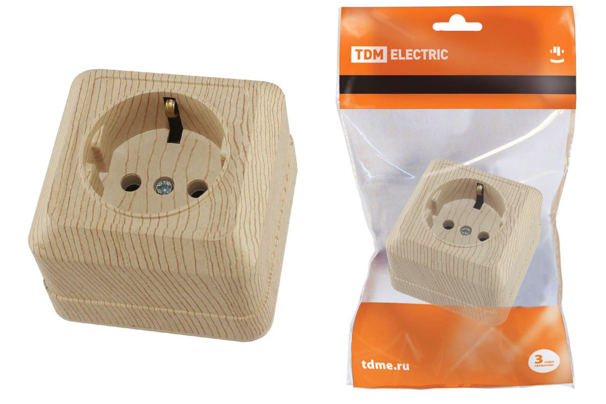 Розетка 2П+З открытой установки IP20 16А, сосна «Ладога» TDM