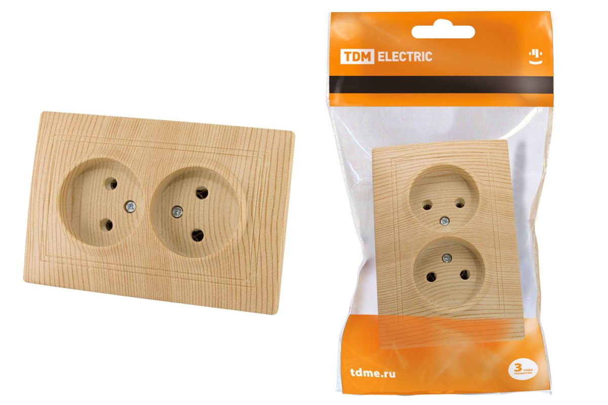 Розетка двойная 2П 10А 250В «ЭКО» (сосна) «Таймыр» TDM