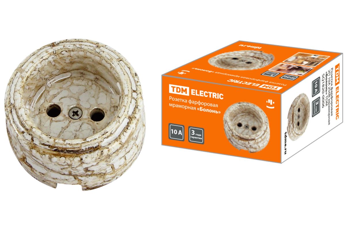 Розетка фарфоровая 2П 10А 250В мраморная «Болонь» TDM