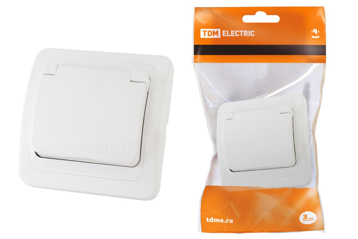 Розетка с крышкой 2П+З 16А IP44 белая «Валдай» TDM