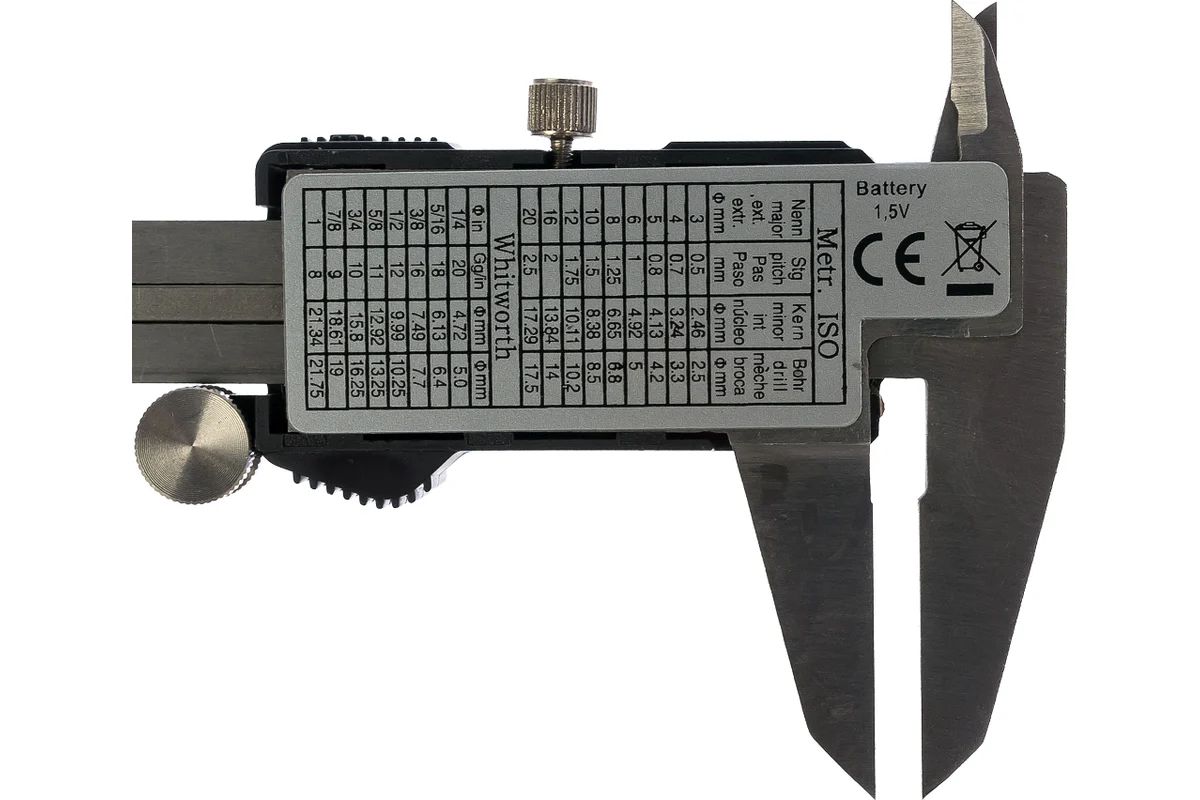 - Материал электронного штангенциркуля 150мм MATRIX 31611- инструментальная нержавеющая сталь;