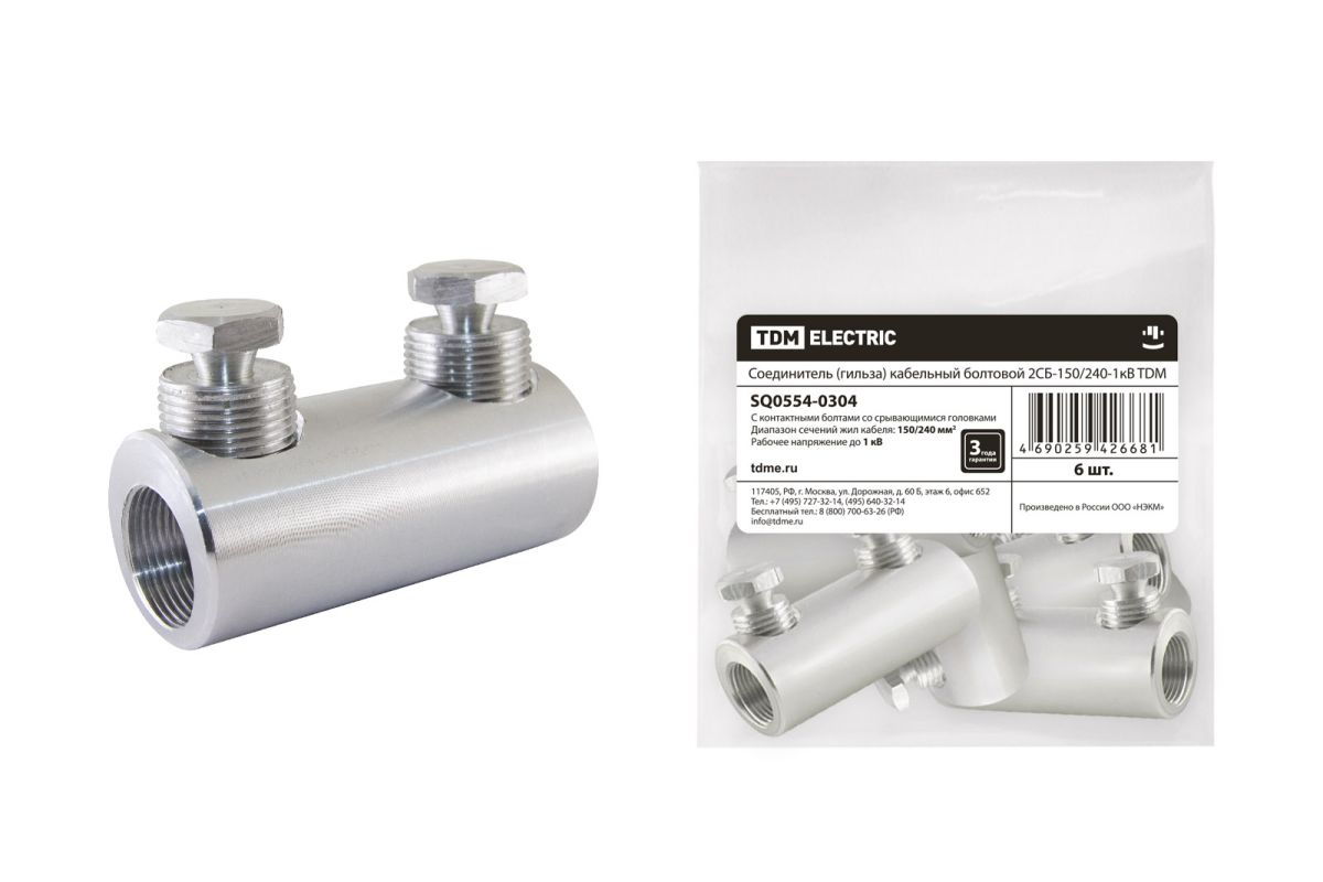 Соединитель (гильза) кабельный болтовой 2СБ-150/240-1кВ TDM