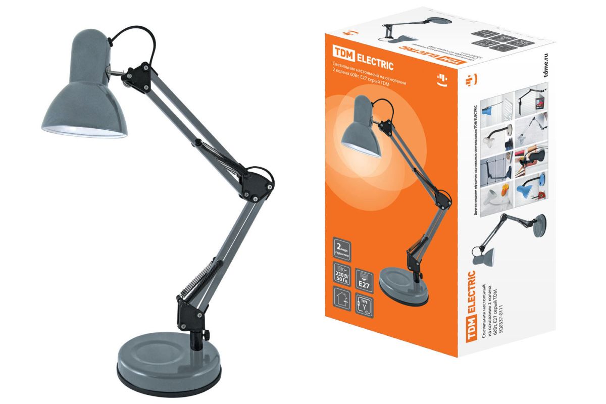 Светильник настольный на основании 2 колена 60Вт, E27 серый TDM