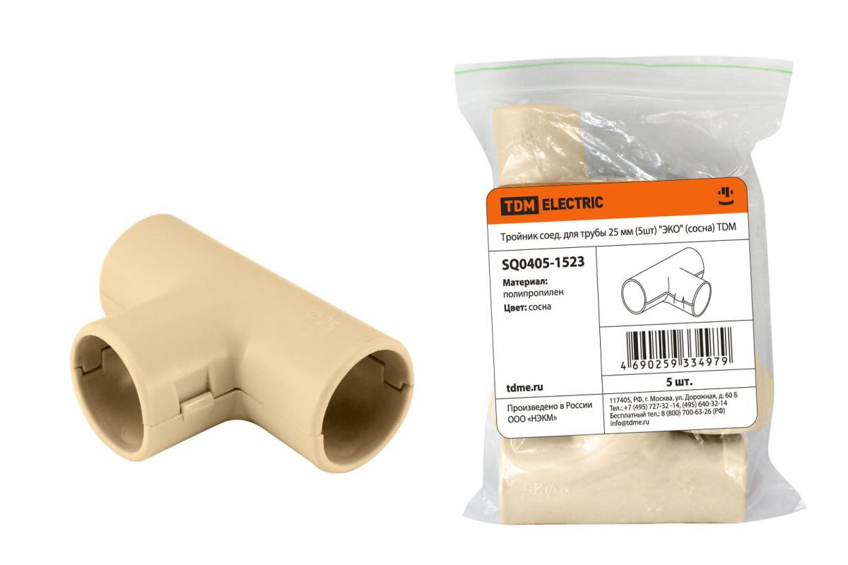 Тройник соед. для трубы 25 мм (5шт) «ЭКО» (сосна) TDM
