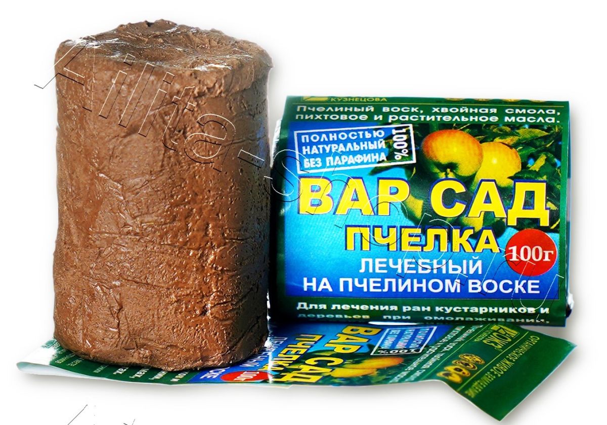 100% натуральный садовый вар. В его основе – пчелиный воск, хвойная смола, пихтовое и растительное масло, а также защитные фитобактерии Фитоспорина.