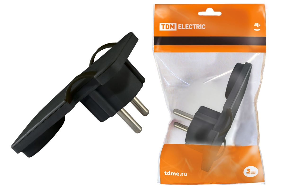 Вилка угловая плоская (8 мм) черная 16А 250В TDM