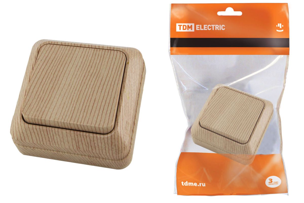 Выключатель 1-кл. открытой установки IP20 10А, сосна «Ладога» TDM