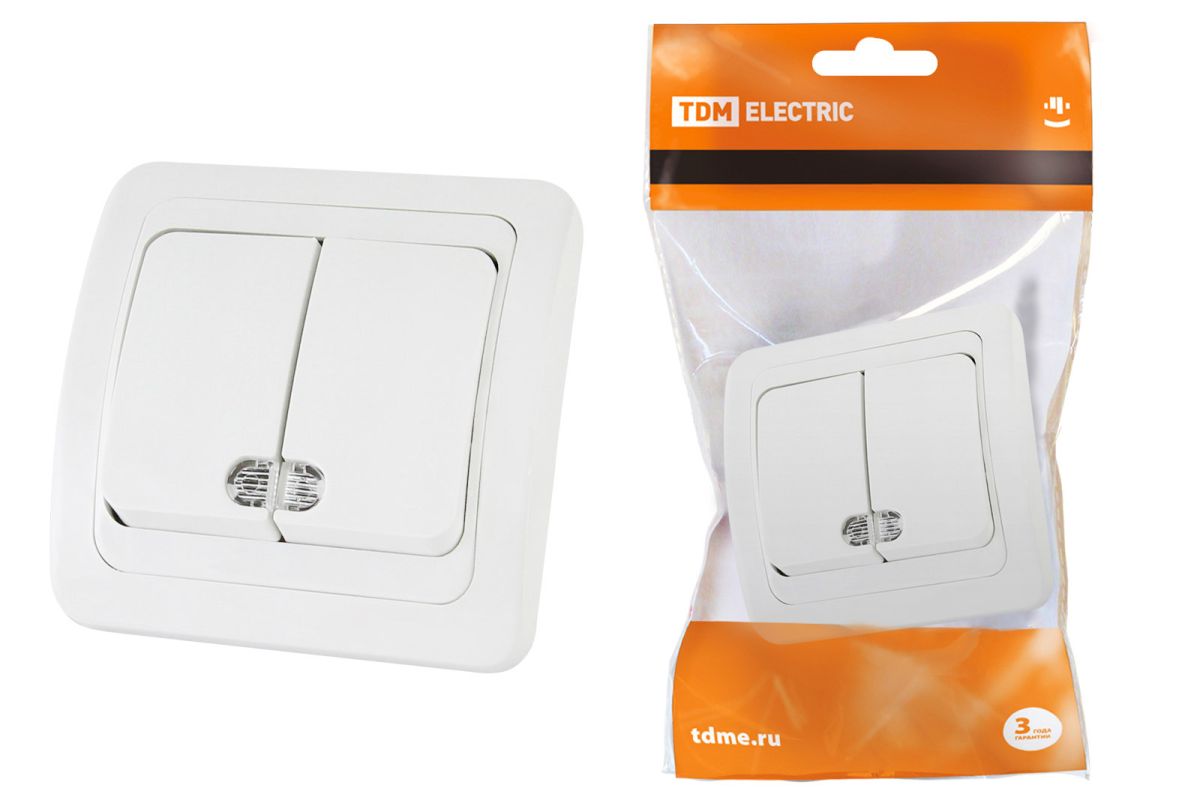 Выключатель 2-кл. с подсветкой 10А белый «Валдай» TDM