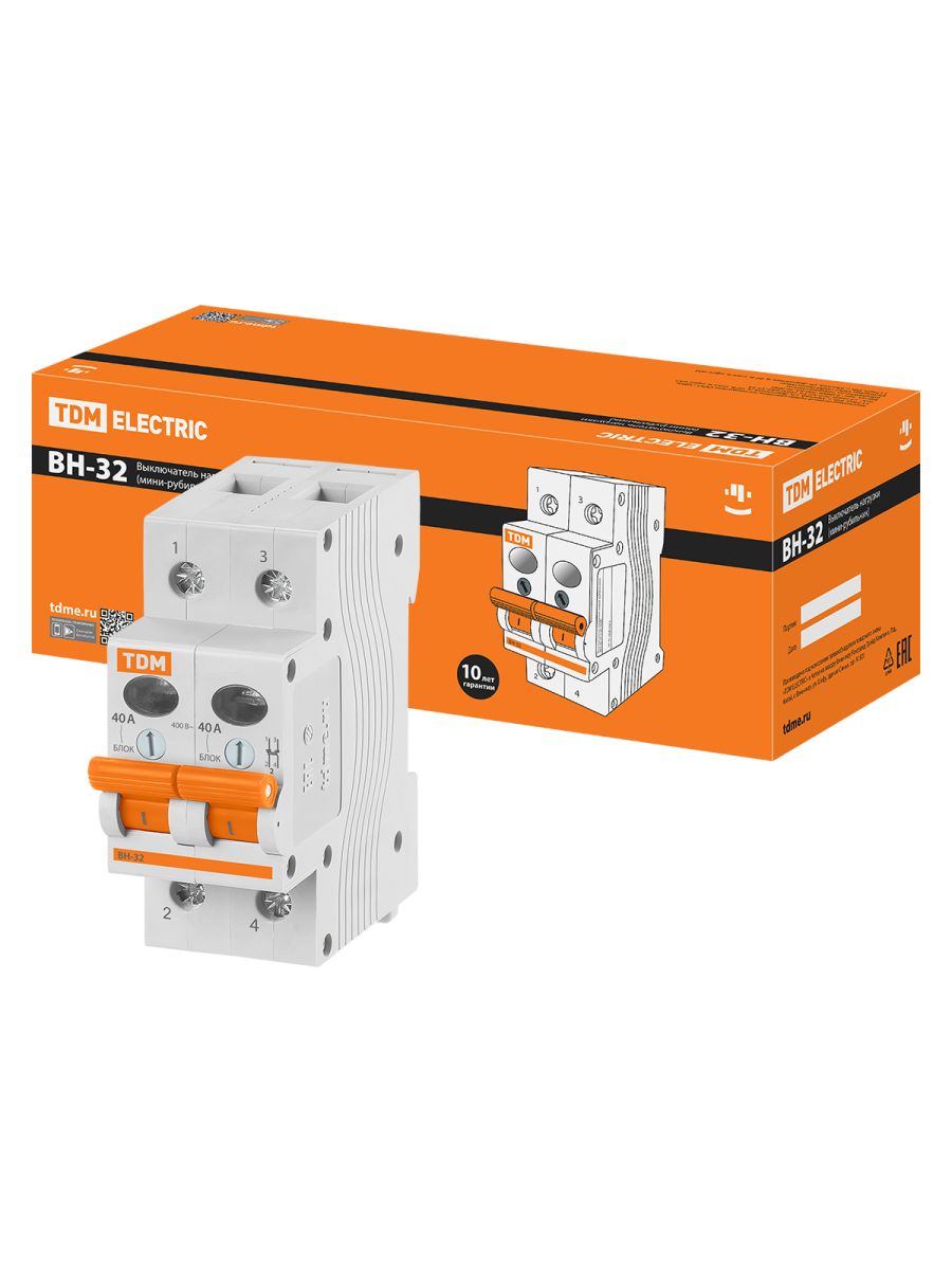 Выключатель нагрузки (мини-рубильник) ВН-32 2P 40A TDM