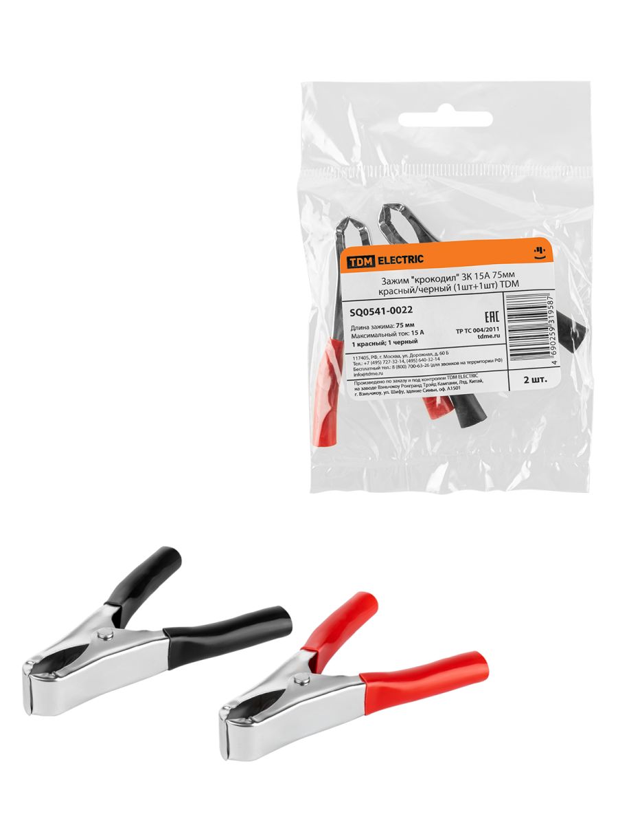 Зажим «крокодил» ЗК 15А 75мм красный/черный (1шт+1шт) TDM