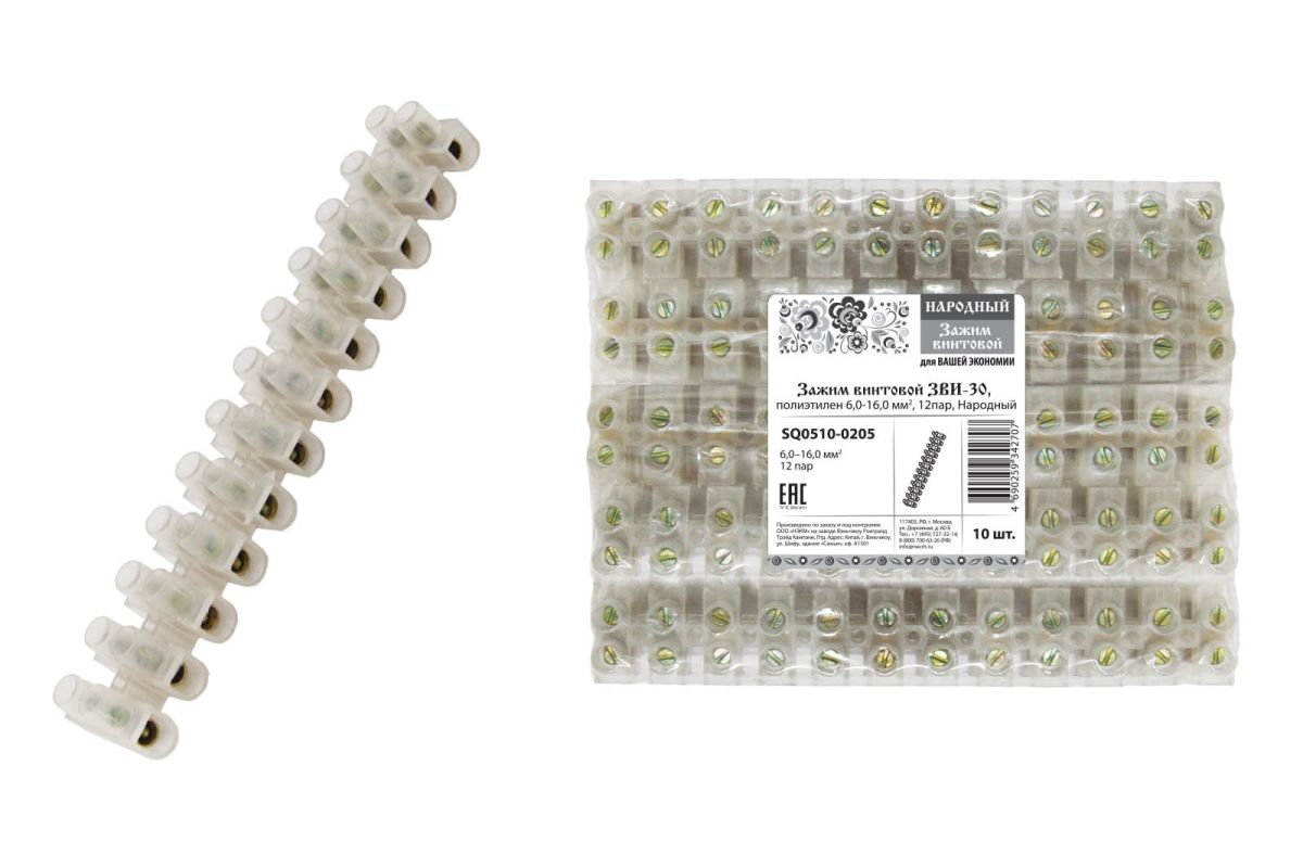 Зажим винтовой ЗВИ-30, полиэтилен 6,0-16,0 мм2, 12пар, Народный