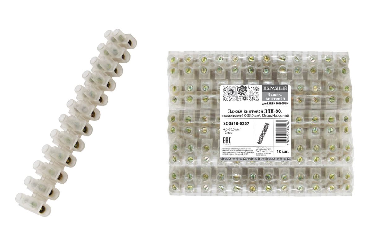 Зажим винтовой ЗВИ-80, полиэтилен 6,0-35,0 мм2, 12пар, Народный